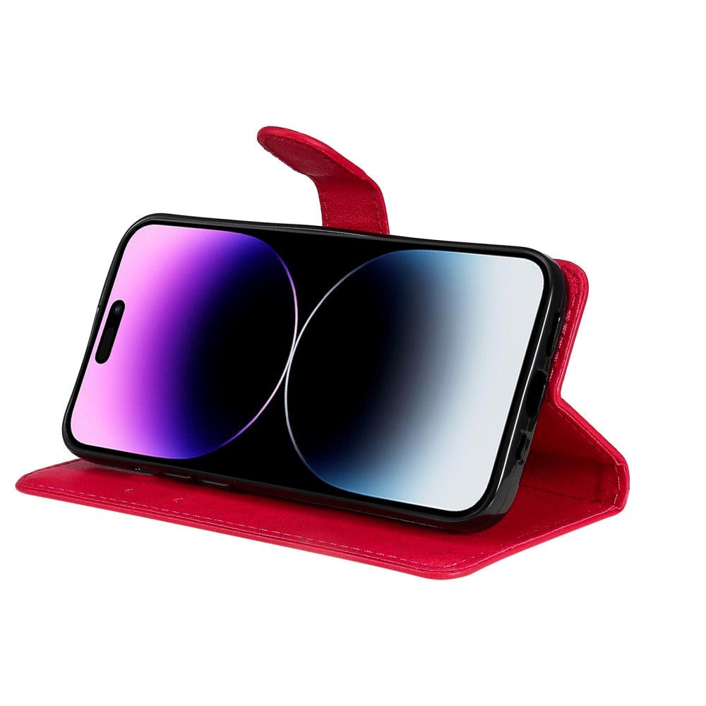 iPhone 15 Pro Max Flip Deksel i Skinn med Lommebok og Stropp - Rød