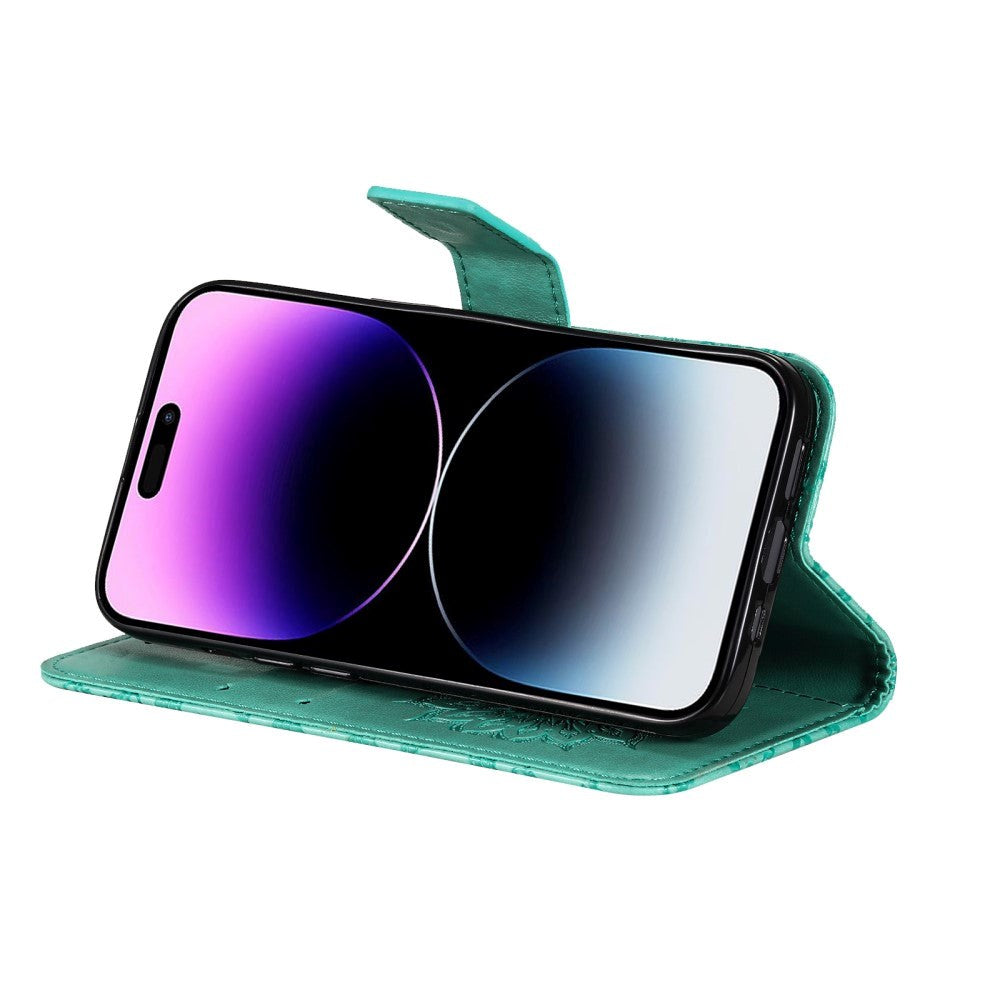 iPhone 15 Pro Max Skinn Deksel med Lommebok og Stropp - Mandala Blomst - Grønn