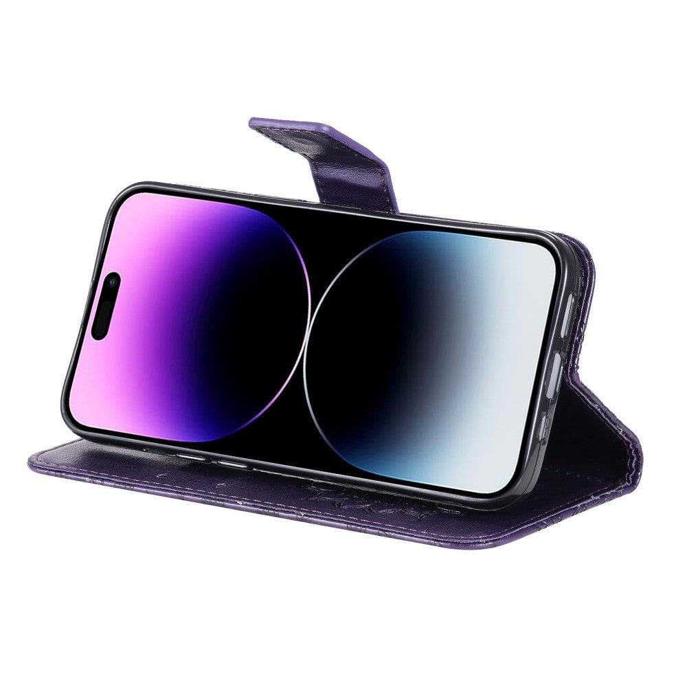 iPhone 15 Pro Max Skinn Deksel med Lommebok og Stropp - Mandala Blomst - Lilla