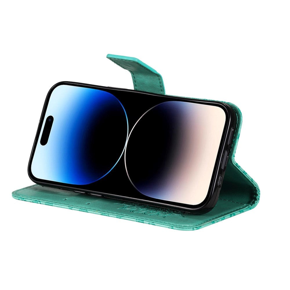 iPhone 15 Pro Skinn Deksel med Lommebok og Stropp - Mandala Blomst - Grønn