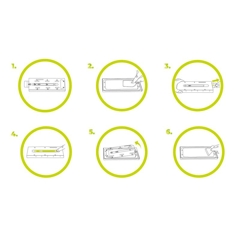 Takket være den smarte monteringsrammen er installasjonen rask, presis og boblefri – selv for nybegynnere.