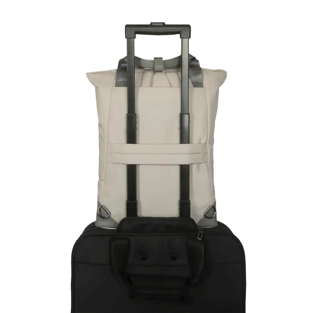 For ekstra bekvemmelighet under reiser er vesken utstyrt med en trolley-rem, slik at den enkelt kan festes til håndtaket på en trillekoffert. De myke bærehåndtakene med magnetisk lukking gjør den behagelig å bære som tote-veske, mens de justerbare skulderstroppene gir god komfort når den brukes som ryggsekk.