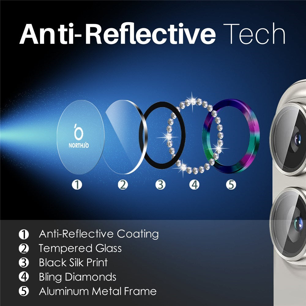 NORTHJO iPhone 16 / 16 Plus Kameralinsebeskytter - Rhinestones - Multi er i restordre og vil bli sendt så snart det er på lager igjen.