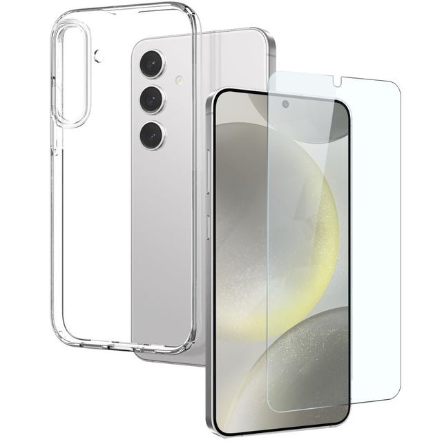 Samsung Galaxy S24 2-i-1 Sett Fleksibelt Plast Deksel med Herdet Beskyttelsesglass - Gjennomsiktig