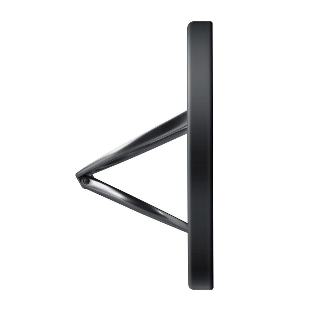 Holderen festes magnetisk med en kraft på opptil 1,2 kg, noe som sikrer en stabil tilkobling til kompatible enheter og deksler. Dobbeltring-designet i sinklegering gir et sikkert grep under bruk og en solid base når den brukes som stativ.