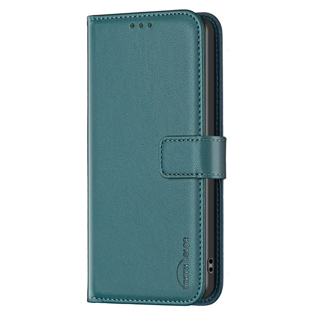 Realme Note 60 / 60x (4G) / C63 (4G) / C61 (4G) Kunstskinn Deksel med Stativfunksjon & Kortholder - Grønn er i restordre og vil bli sendt så snart det er på lager igjen.