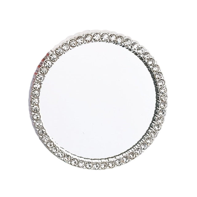 Det lille speilet er formet som en perfekt sirkel med en diameter på 5,3 cm, og ser flott ut på alle telefoner. Kanten er dekorert med små, fine rhinsteiner som glitrer vakkert i lyset.