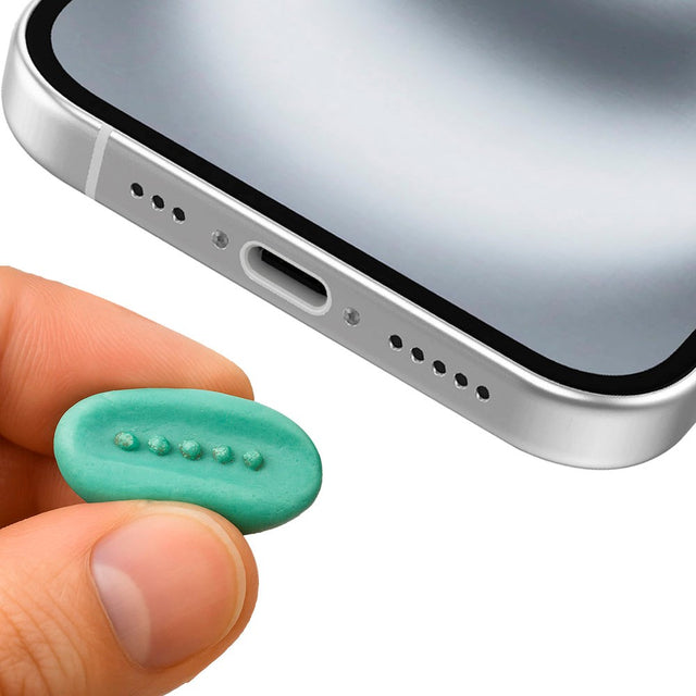 Den medfølgende rensepastaen fjerner effektivt støv, smuler og smuss fra for eksempel høyttalere, ladeporter og mikrofoner – uten å etterlate striper eller fettmerker. Den er enkel å bruke og like lett å fjerne.