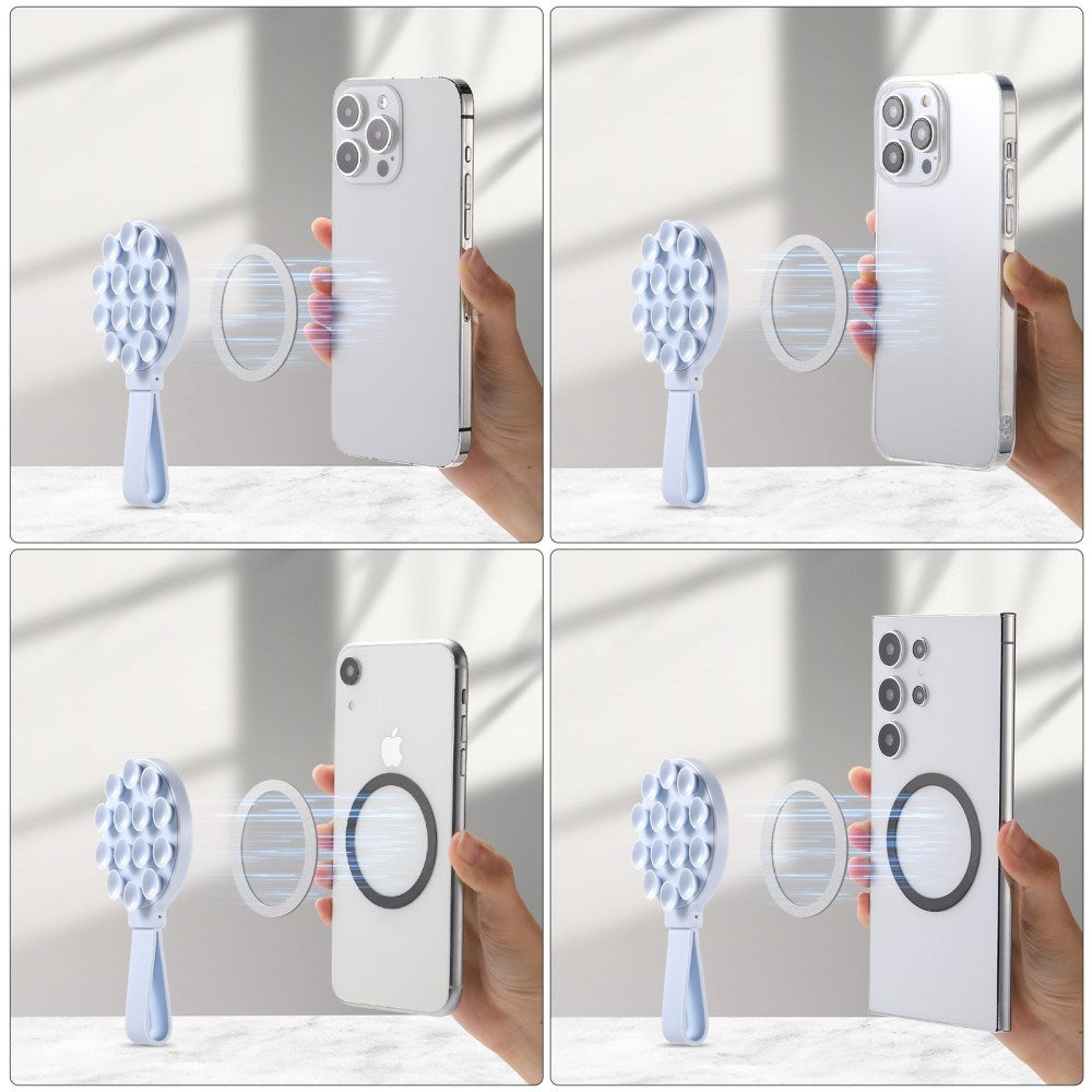 Med totalt 14 individuelle sugekopper gir denne holderen et sterkt og pålitelig feste, slik at du kan være sikker på at telefonen din ikke faller eller sklir. Denne telefonholderen i silikon hjelper deg med å lage delbart innhold helt håndfritt.