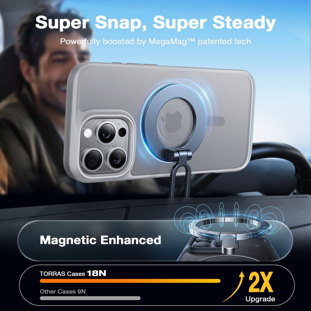 TORRAS iPhone 16 Pro Hybrid Deksel - MagSafe Kompatibel - Grå er i restordre og vil bli sendt så snart det er på lager igjen.