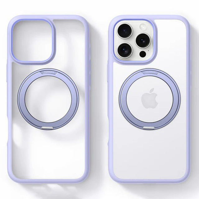 iPhone 16 Pro Hybrid Plast Deksel m. Roterbar Kickstand Ring - MagSafe Kompatibel - Gjennomsiktig / Lilla