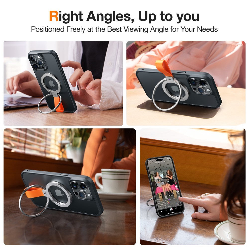 Bred Kompatibilitet: Designet for å fungere med MagSafe-kompatible deksler og case. For ikke-magnetiske case medfølger en metallring som enkelt kan festes, slik at du kan nyte både kickstand- og grep-funksjonalitet.