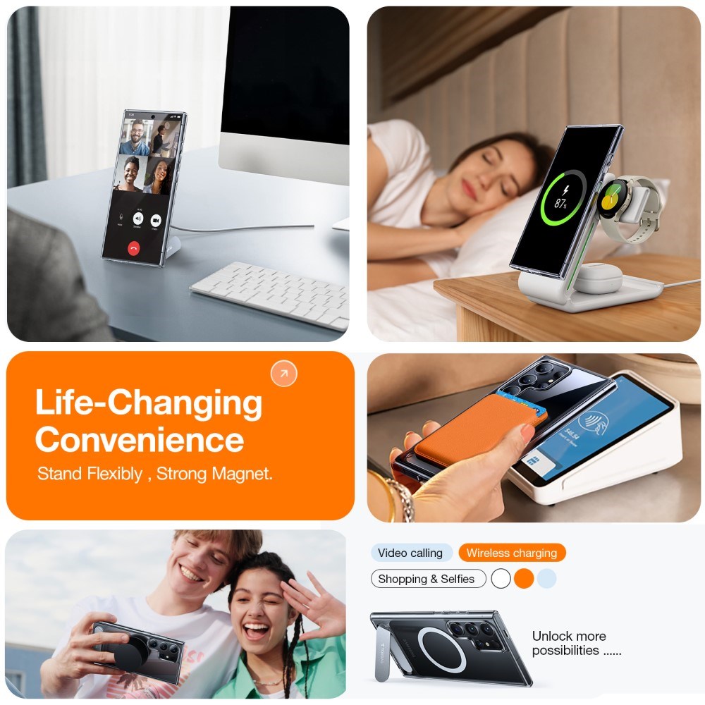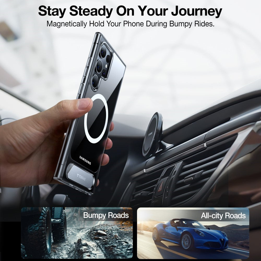 Samsung Galaxy S24 Ultra Hybrid Deksel m. Kickstand - MagSafe Kompatibel - Gjennomsiktig