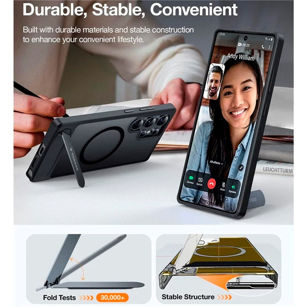 Samsung Galaxy S25 Ultra Hybrid Deksel m. Ståfunksjon - MagSafe Kompatibel - Svart
