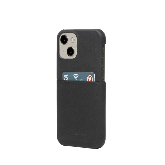 iPhone 13 Mini Ekte Skinn Deksel med Kortlomme - Svart