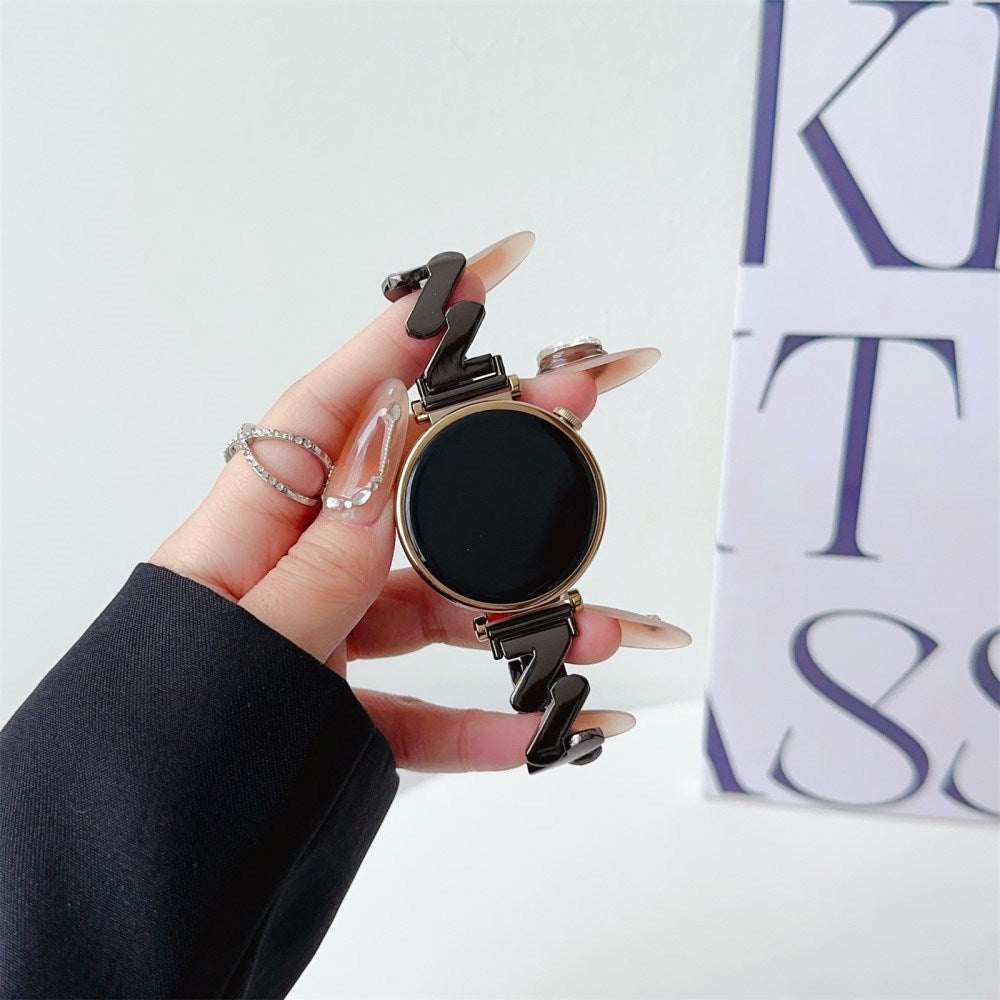Den elegante bølgedesignen legger til et moderne og stilfullt preg, noe som gjør den egnet for enhver anledning, fra arbeid til fritidsaktiviteter. Du kan enkelt tilpasse lengden på remmen ved å fjerne lenkene, slik at den passer perfekt til håndleddet ditt.