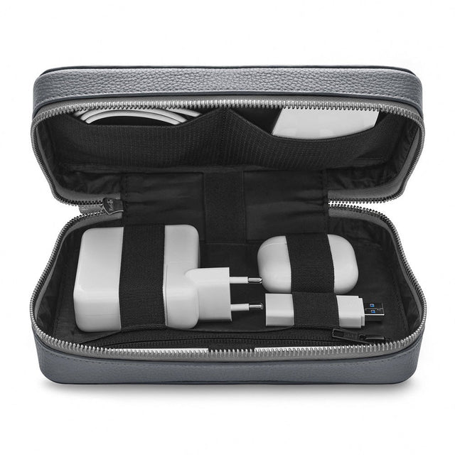 Ekte Skinn Tech Oganizer - Grå